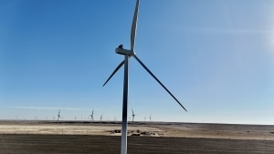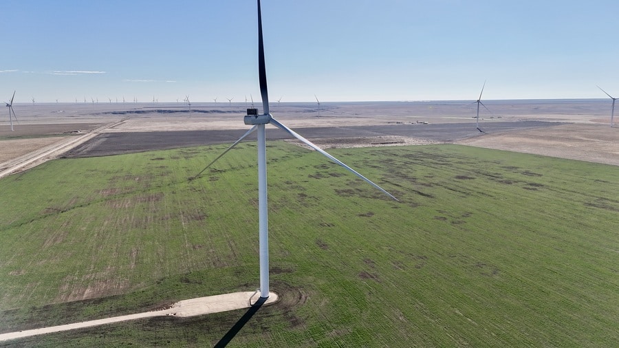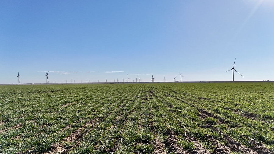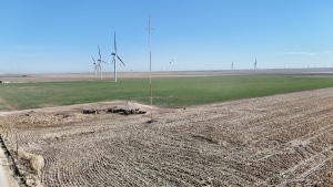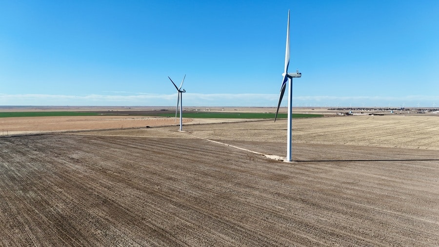 Three wind turbines located on the property, along with a weather station tower